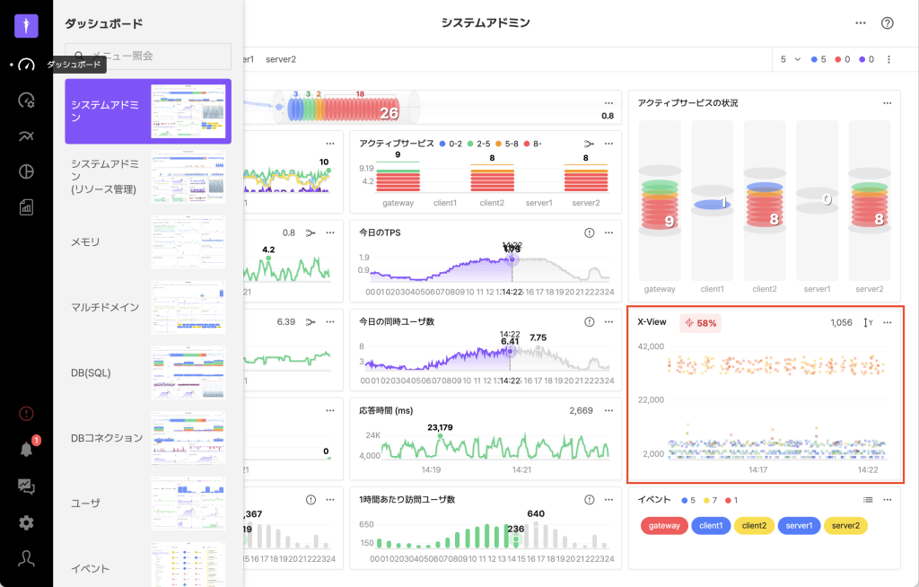 X-View(ダッシュボード)は、ダッシュボード➡システムアドミンの操作で表示されます。