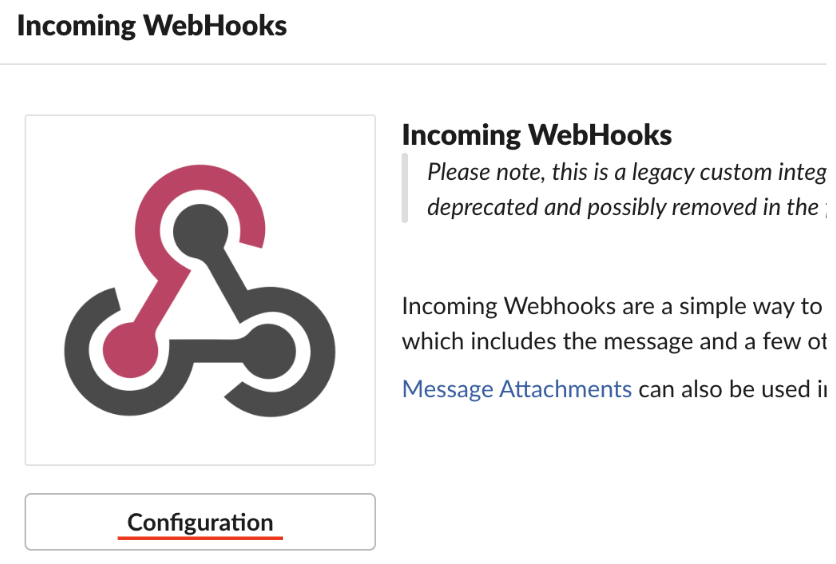 次に、Slackで Add apps設定を追加します。 Appsメニューで Incoming WebHooksを選択し、上記で生成したチャネル名を選択します。