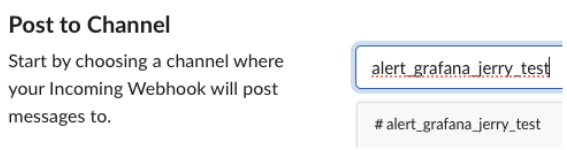 このページで Grafana Slackアラートを受信するチャネル名を指定します。