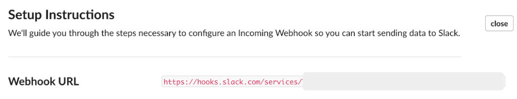 チャネル名を入力すると、下記のような Webhook URLを確認できます。外部サービスでこの URLを利用して Slackにメッセージを発行します。なお、この URLを公開すると、他のユーザがこのリソースを使用できるのでGithubなどに公開しないように注意して下さい。