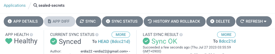 このように SealedSecretリソースでSecretリソースを生成できます。Git上の安全ではない Secretリソースを削除することで、暗号化されたSealedSecretマニフェストを安全に共有できます。