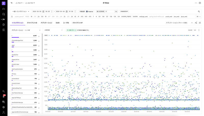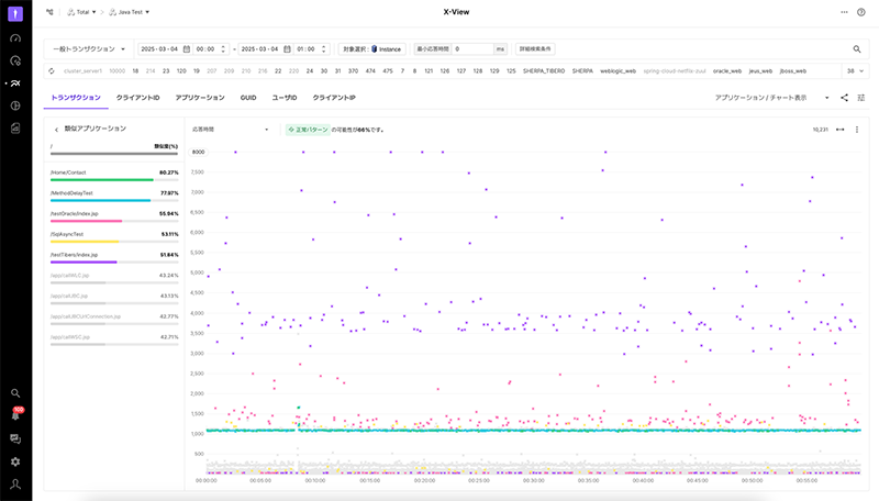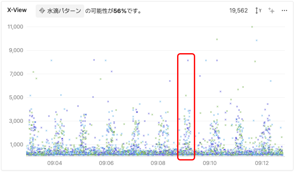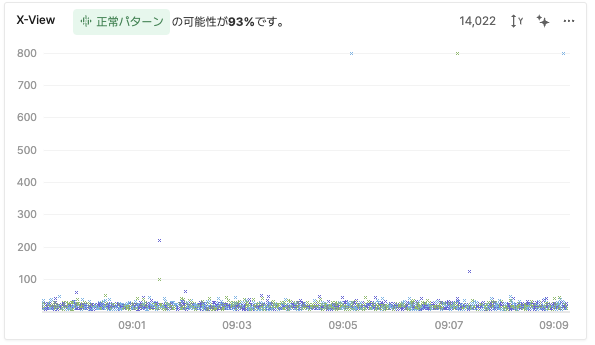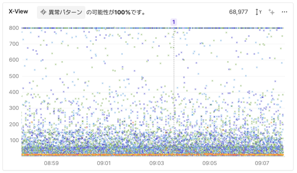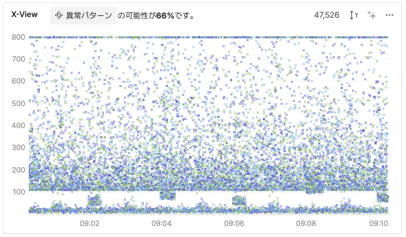 一方、図3でX-Viewの下部に点が均等に分布している場合、システムが安定してトラフィックを処理している状況を示しています。