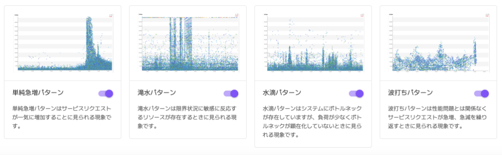 例えば、「波打ちパターン」の場合、トラフィックの増減に応じて応答時間が敏感に反応している状態を意味します。