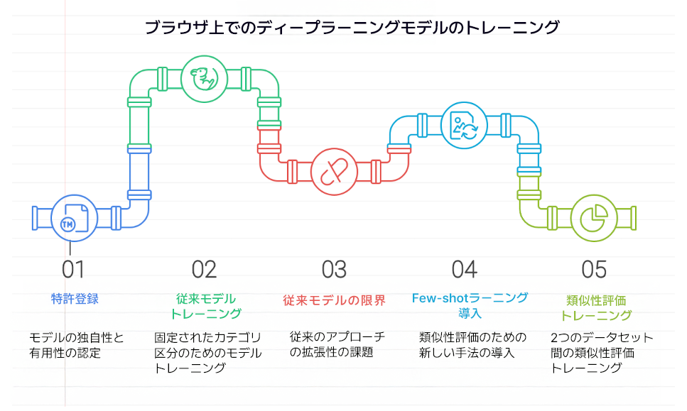 このディープラーニングのオンブラウザー構造(図7参照)は、その独創性と有用性が認められ、特許として登録されています。