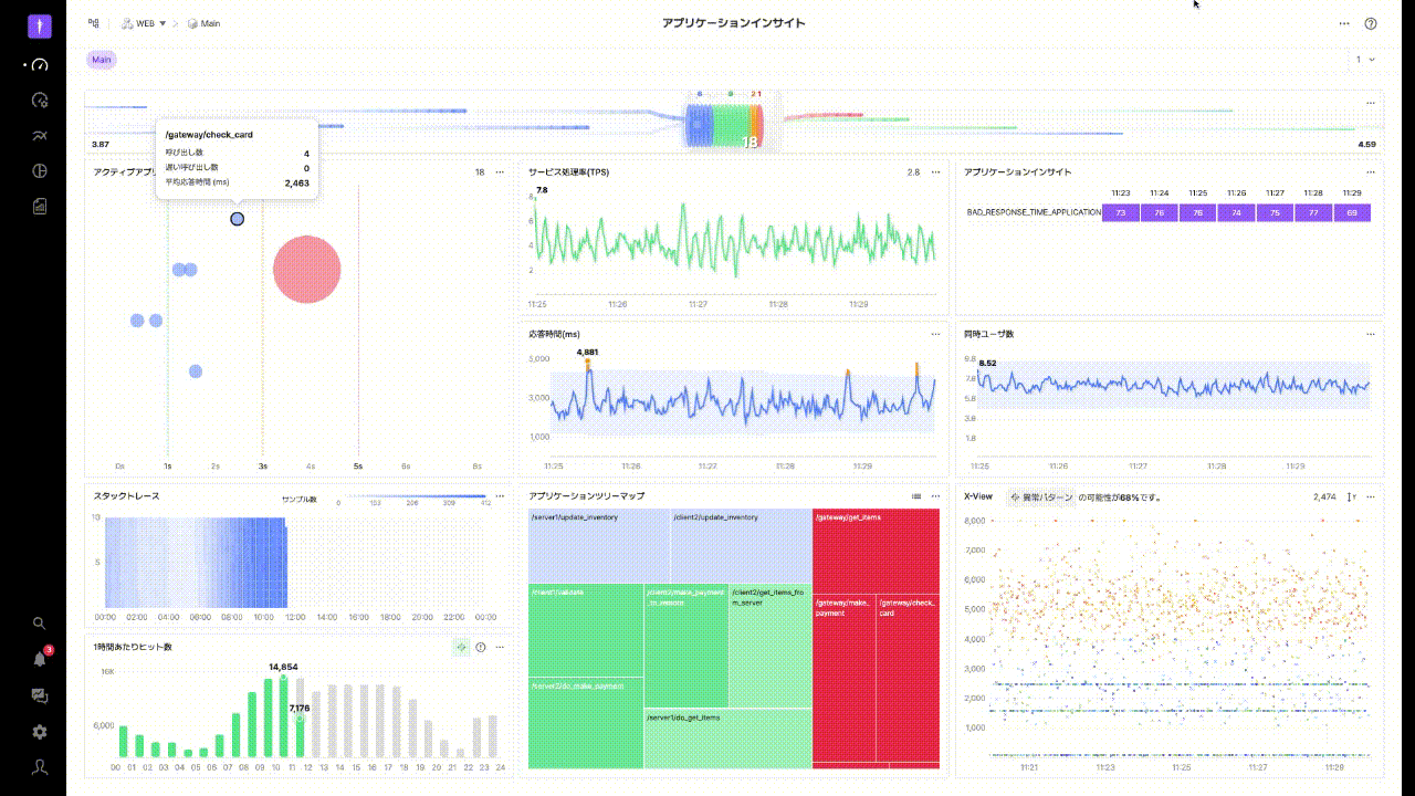 午前9時から11時の間に、応答時間とエラー数が大幅に増加していることが確認されました。この時間帯に何が起こっていたのかを特定する必要があります。