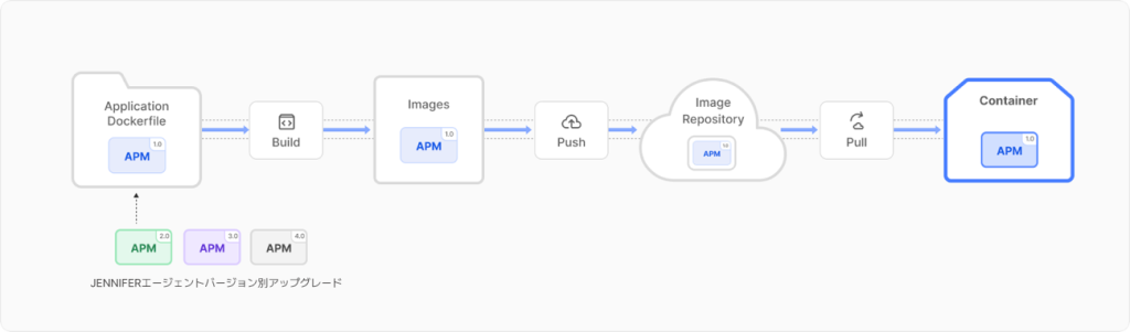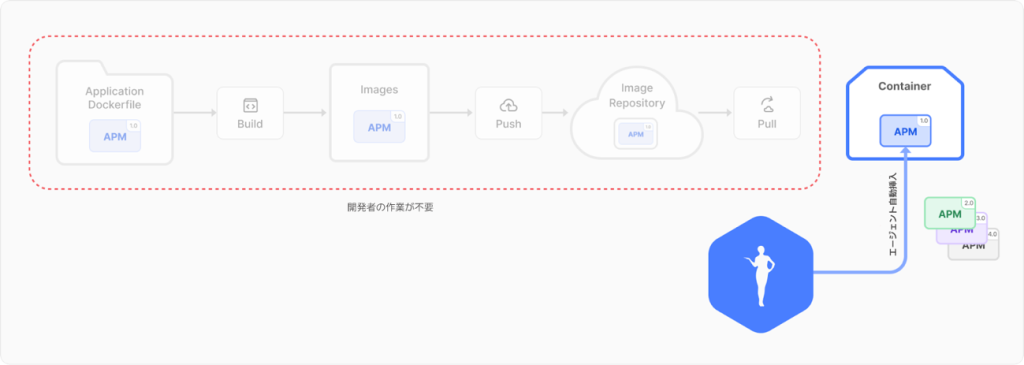 - 毎回イメージをリビルド:APMエージェントを追加するにはDockerfileを編集して再度ビルドする必要があります。