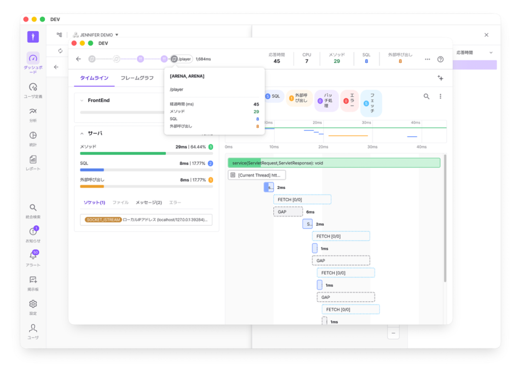 アプリケーションからトランザクションの詳細分析
