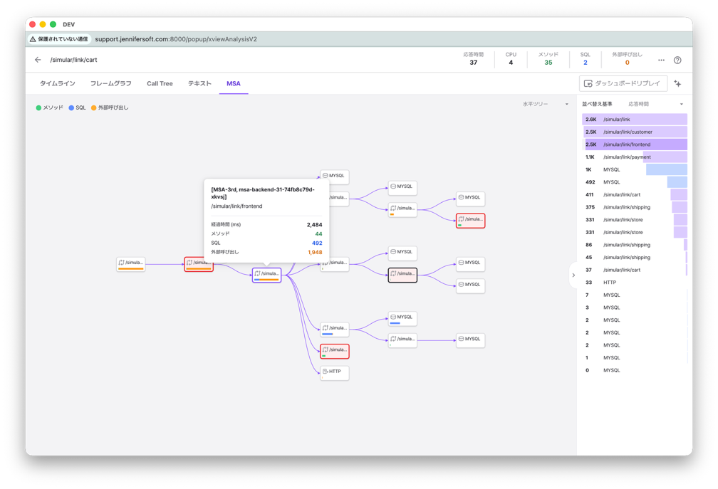 どのサービスがボトルネックになっているのかをデータに基づいて把握できます。推測ではなく、実測値をもとに改善の優先順位を決定できます。例えば、