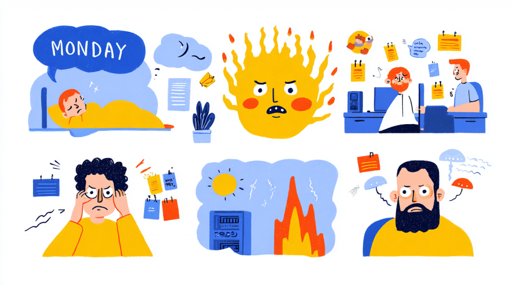木曜日:開発者は眠れないまま天井を見つめながら、「今、サービスは本当に大丈夫だろうか…?」と不安になる。